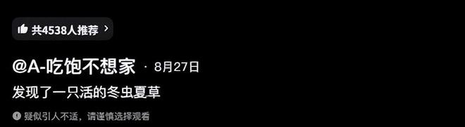 其实大部分人一眼就看出来了吧?这分明就鼠尾蛆嘛!但博主不知道是整活还是真的没认出来,他居然给视频配文:”发现了一只活的冬虫夏草!“