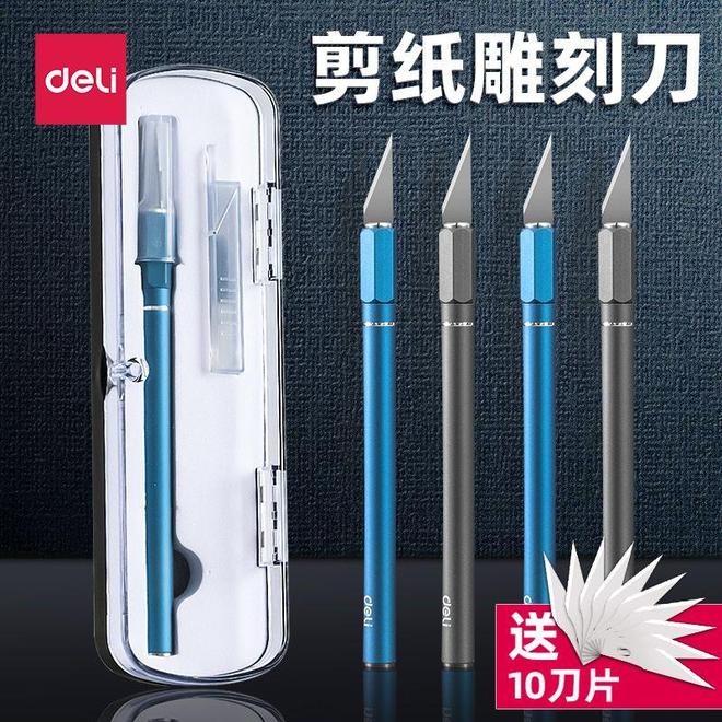 手工创作的魅力在于跨界融合——今天可能在做橡皮章,明天就想尝试木勺雕刻。这时候,一套覆盖多场景的刀具就显得尤为重要。得力雕刻刀套装采用模块化设计,包含5种可替换刀头:平口刀适合大面积削切,圆口刀处理曲线游刃有余,斜口刀则专攻细节修饰。这种“一盒走天下”的设计,特别适合刚入坑的新手避免重复采购